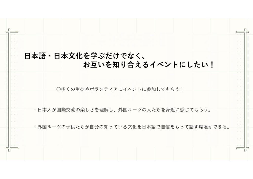 また、みなとグローカルの子どもたちが、自分の経験や思い出を日本語で生き生きと語る姿を見てみたいと思いました。