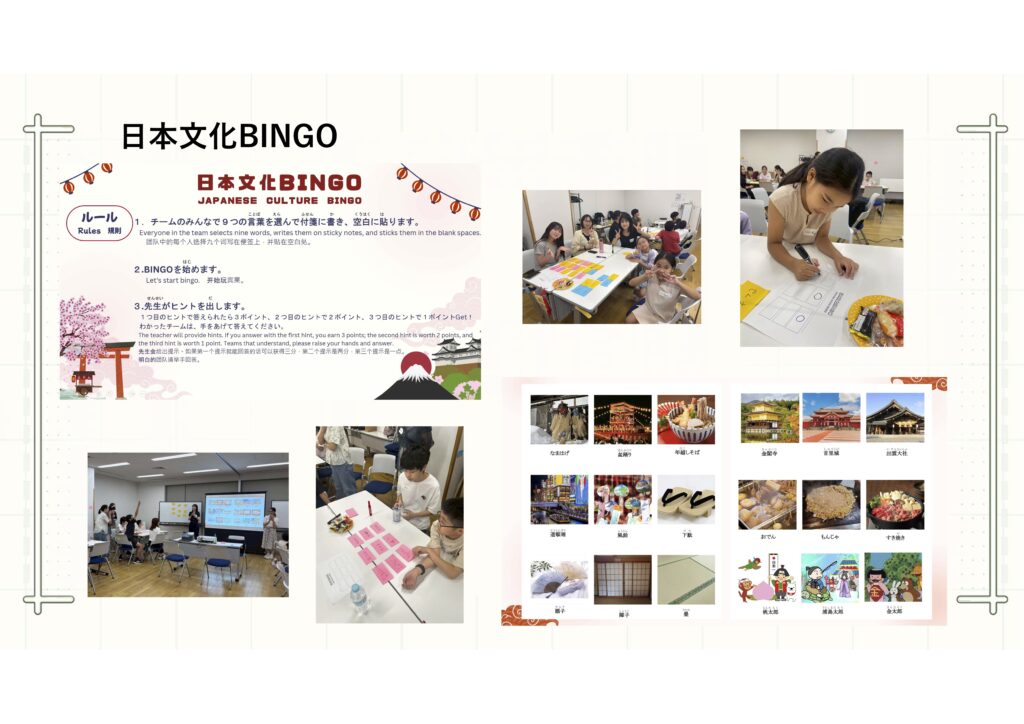 初めて見る日本の文化に興味を持ちながら、グループで協力してカードを作り、わいわいとビンゴを楽しみました。