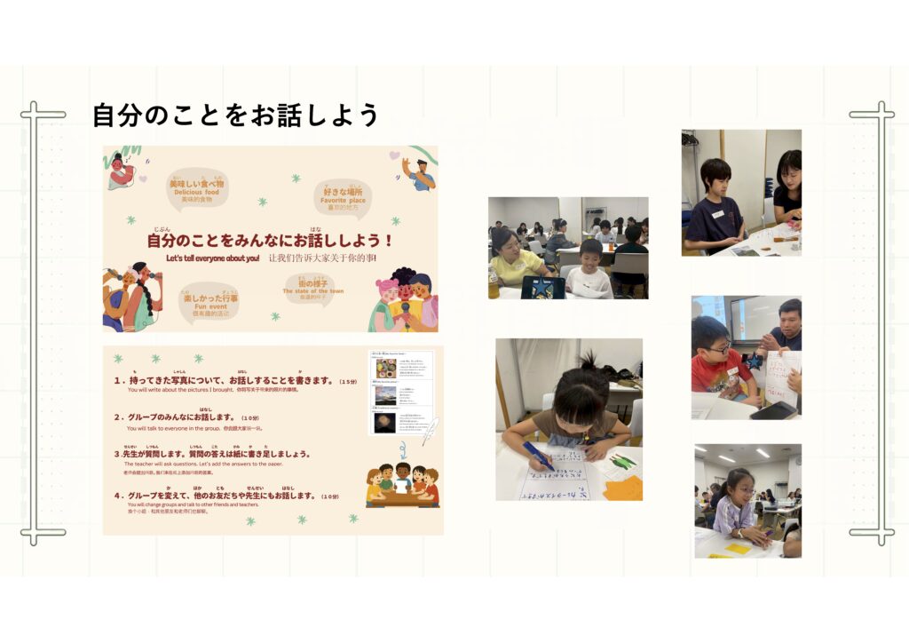 子どもたちは上手に日本語の文章を書き、思い出の写真を見せながら、自分の好きな食べ物や場所、イベントについて紹介してくれました。