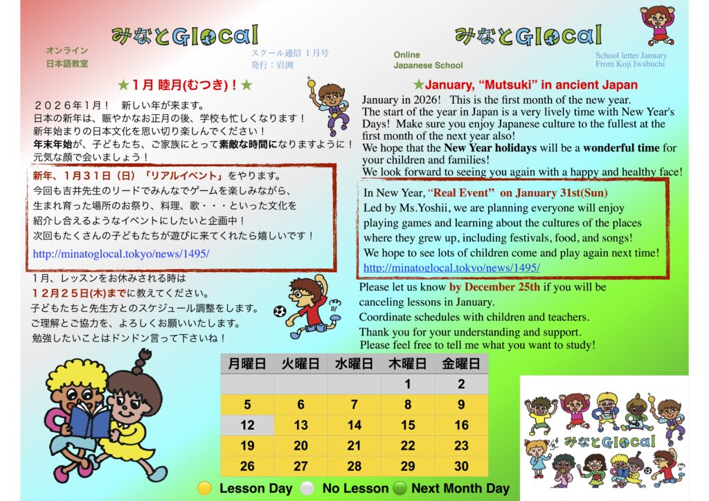 また2026年1月は1月5日(月)からスタートです。