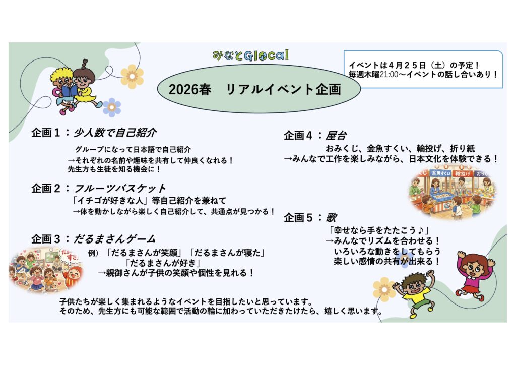 【一つ一つのイベント詳細をこれから参加するみなさんと考えていきたいです!】