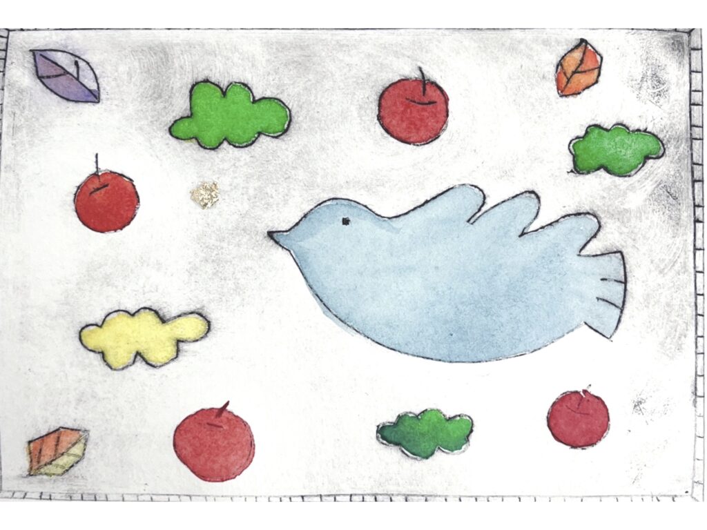庭で 出会ったものや、 感じたことを、 版画の 作品に してみましょう。